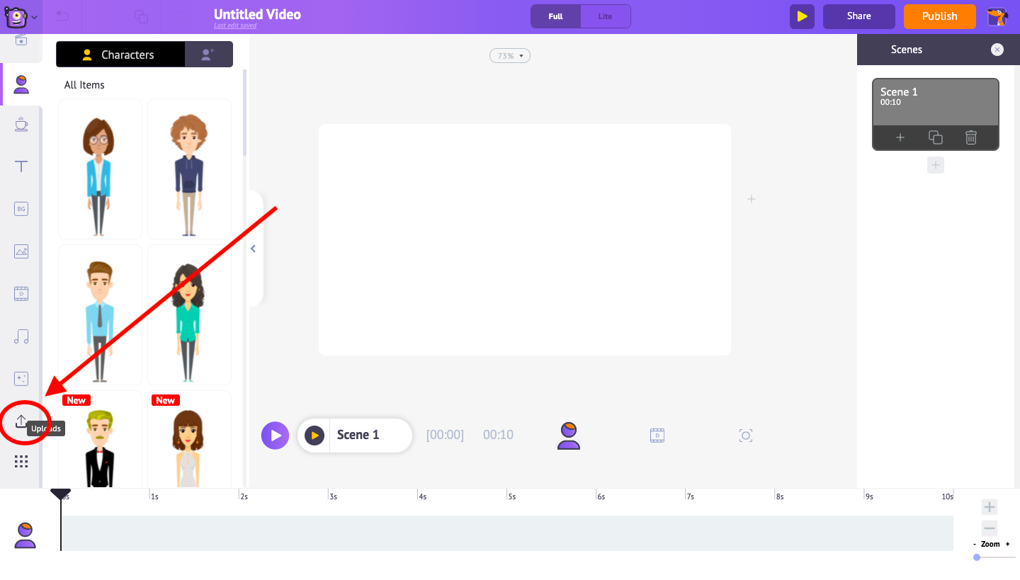 If you want to increase or decrease the duration of the scene, you can do that by using the ‘+’ and ‘-’ options in the timeline. These options will increase and decrease the duration of a scene by 1 second for each click.