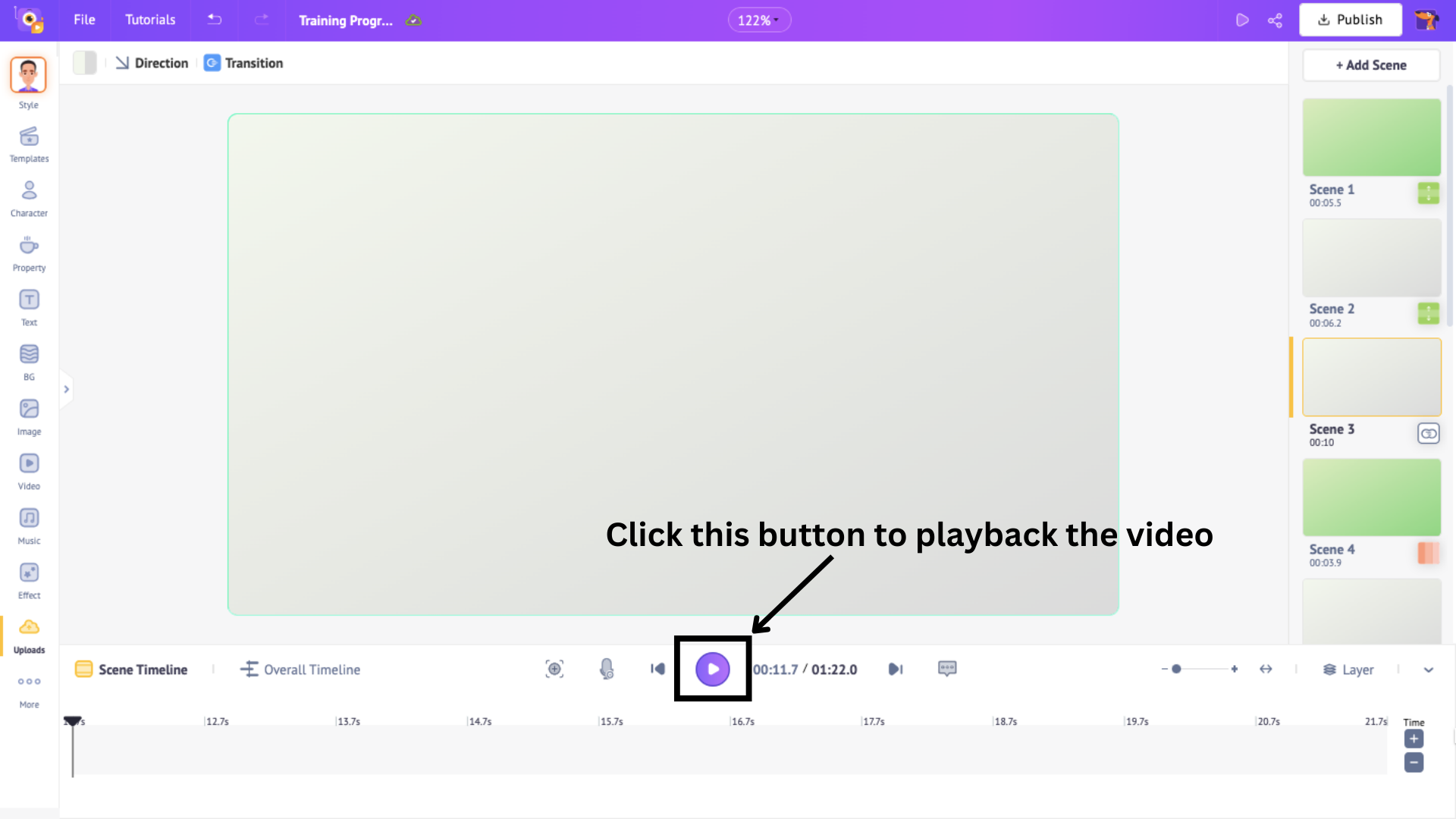 Now that we've covered the four key elements, let’s talk about the scenes. The video already contains plenty of scenes, but what if you want to add a new scene from scratch?